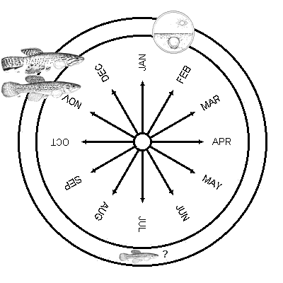 | Dec/Jan/-mar/apr.? | Tørtid, voksne fisk dør. | |