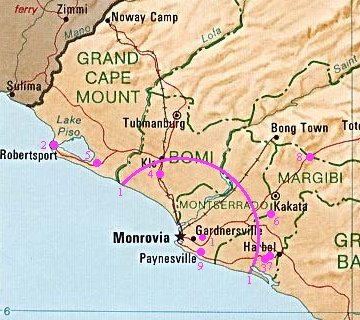 Note: (Roloff: p.1, 1974)-"...Jeg kunne ikke nøjagtigt angive dette findested i beskrivelsen, fordi vi først kørte ca. 30 mil ad en vej (ikke vejen til Robertsfield!) og så gik det endnu temmeligt længe kryds og tværs på smalle urskovsveje. Jeg ville heller aldrig genfinde dette sted uden hjælp fra Charles Steiner. ..."
